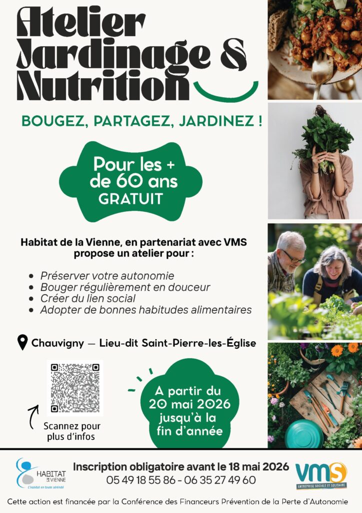 En partenariat avec l’association VMS (Vienne et Moulière Solidarité), ce programme combine deux dispositifs complémentaires : activité physique douce et alimentation équilibrée.