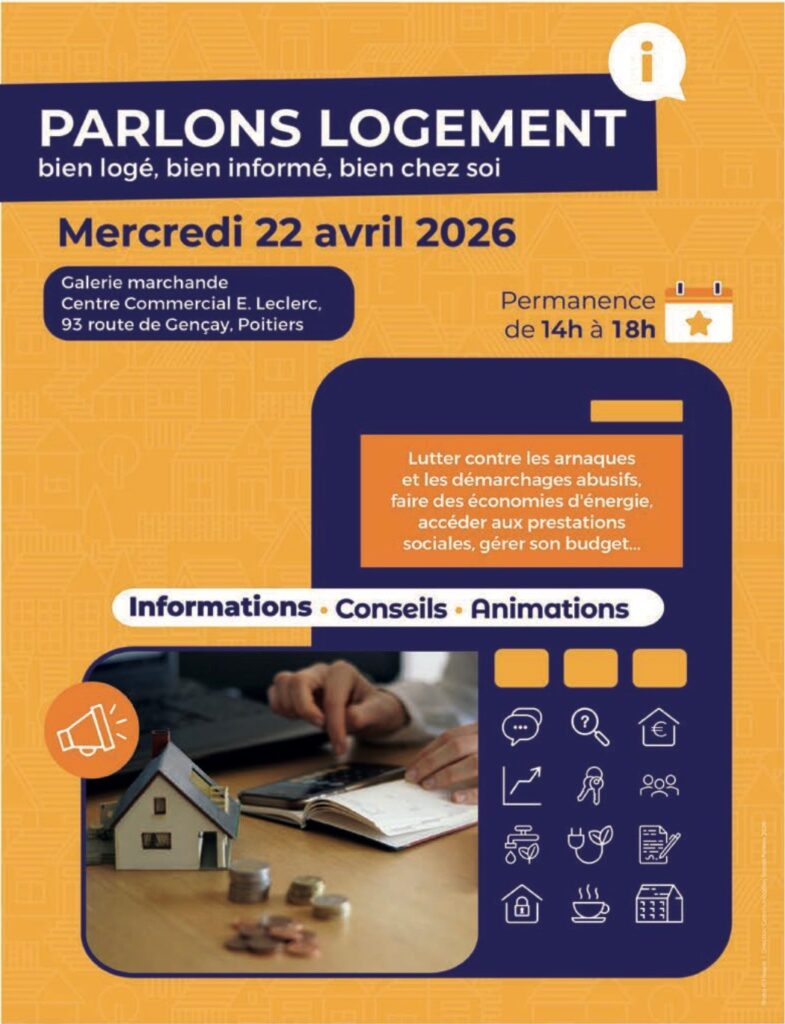 Le mercredi 22 avril 2026, ne manquez pas le Forum « Parlons Logement », organisé dans la galerie marchande du E. Leclerc à Poitiers, situé au 93 route de Gençay.