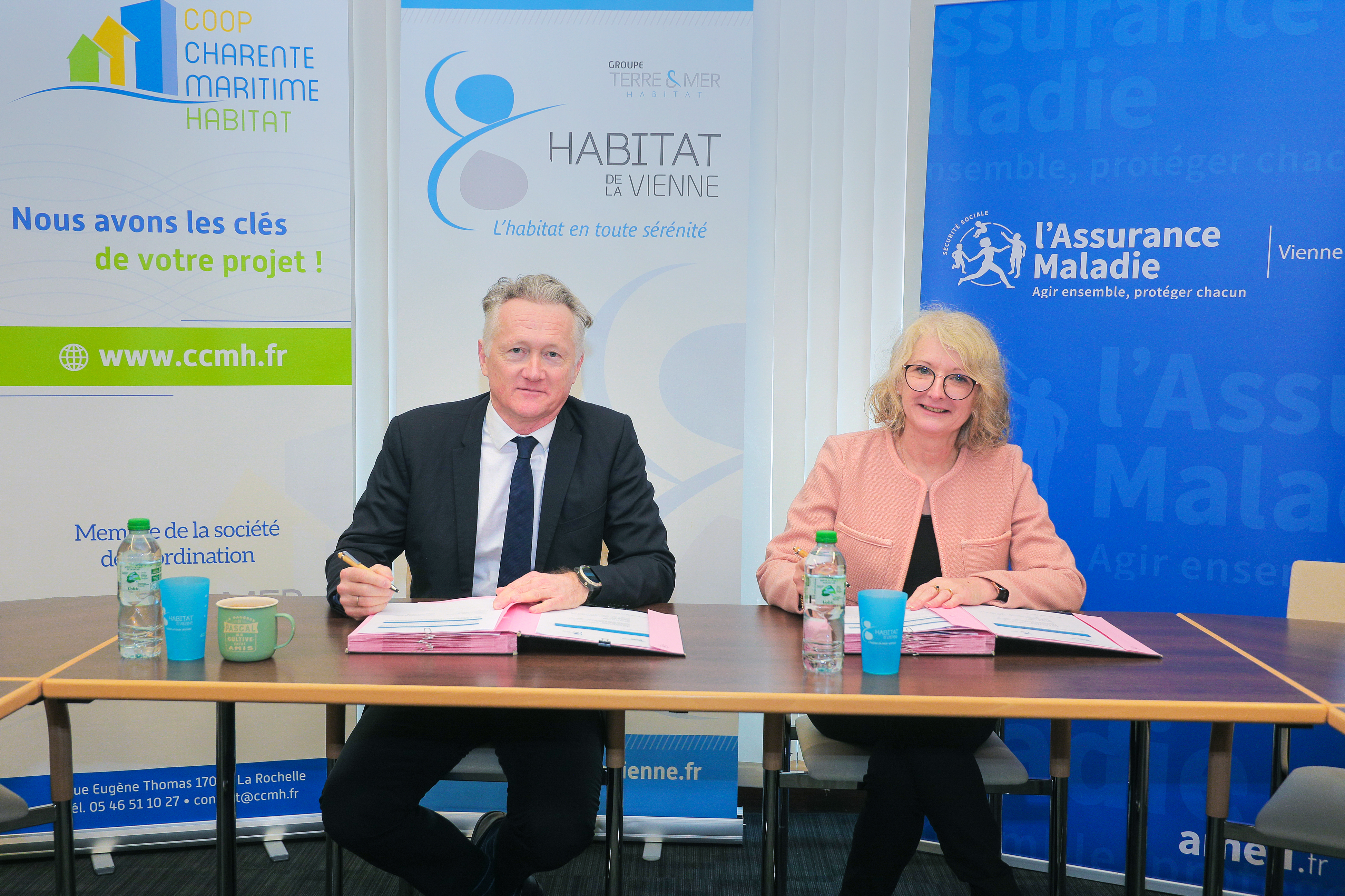 La signature de la convention s’est déroulée le jeudi 22 janvier, en présence de M. Pascal Aveline, Directeur général d’Habitat de la Vienne, et de Mme Sylvie Landrieau, Directrice de la CPAM de la Vienne.